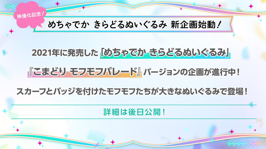 映像化決定を記念して、「めちゃでか きらどるぬいぐるみ~こまどり モフモフパレード~」のグッズ企画が始動いたしました。