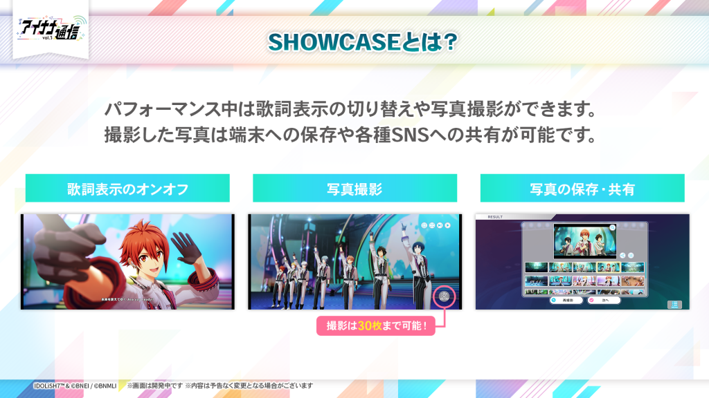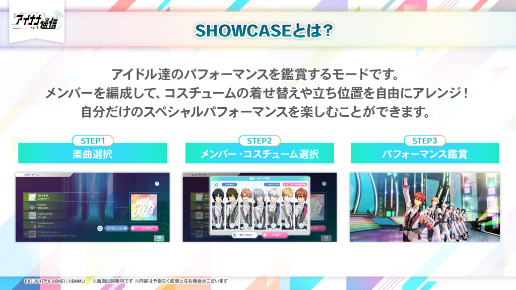 「SHOWCASE」とは、アイドルたちのパフォーマンスを鑑賞できる機能です。