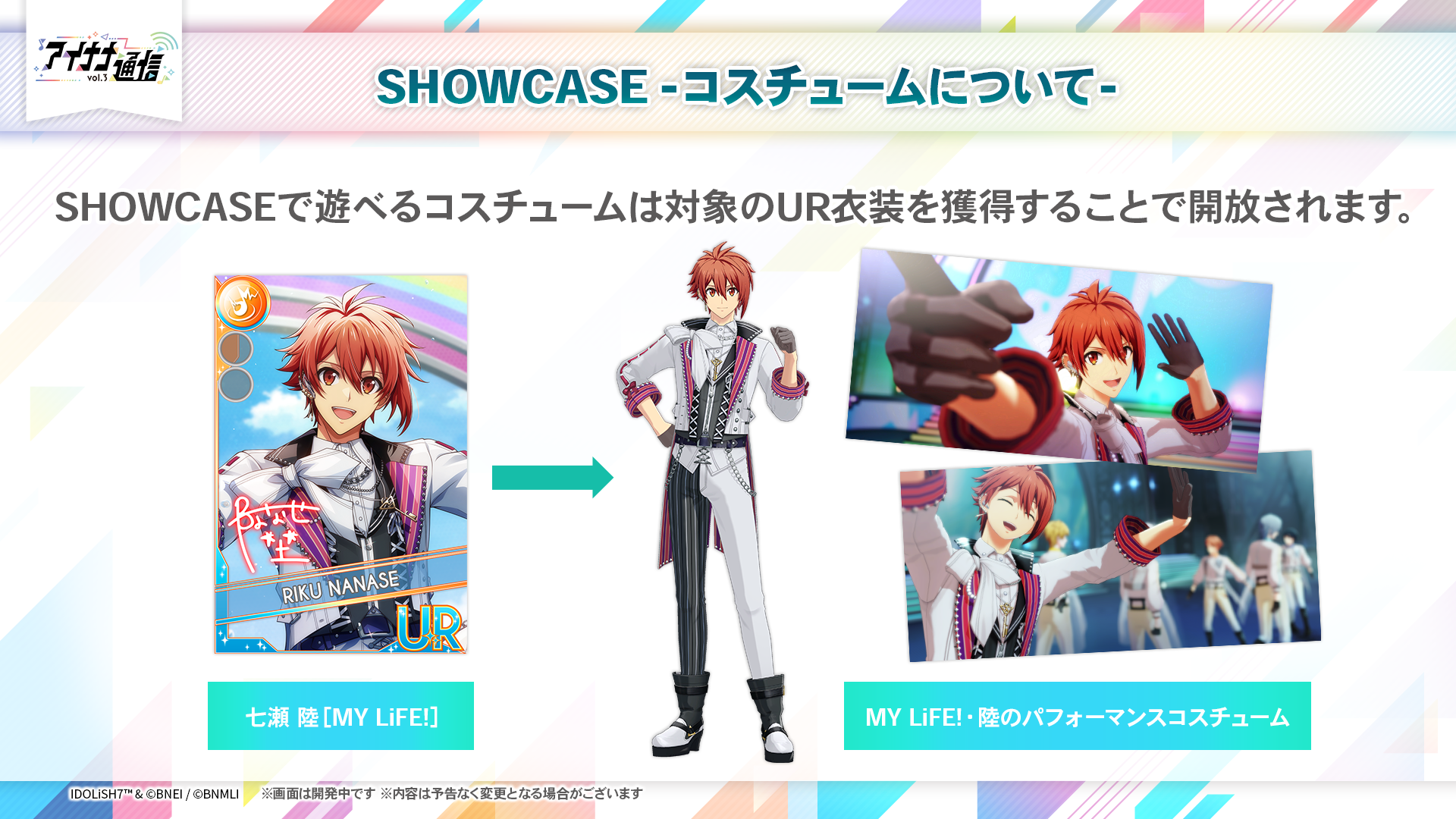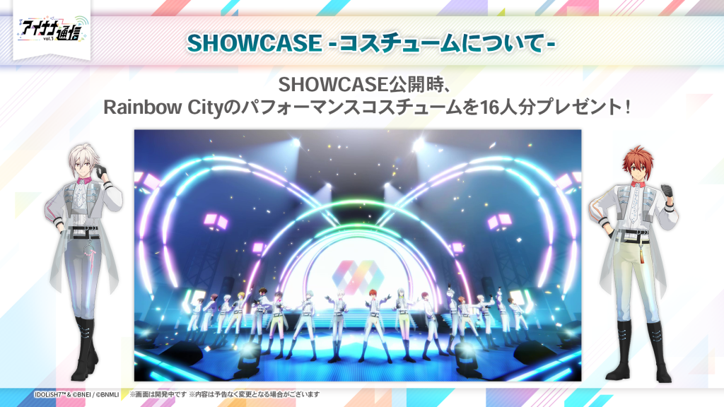 SHOWCASEが公開されたら、アイドルたちにRainbow Cityのコスチュームを着せて楽しんでください!