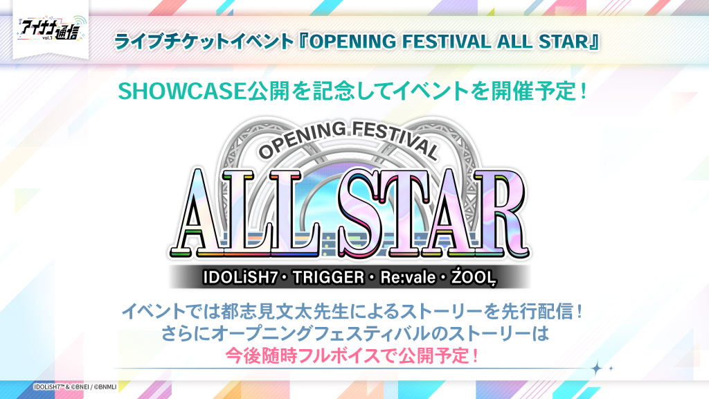 SHOWCASE公開を記念して、『OPENING FESTIVAL ALL STAR』開催決定!