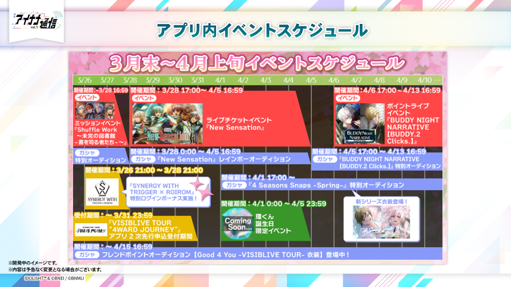 3月末~4月上旬のアプリ内イベントスケジュール公開!