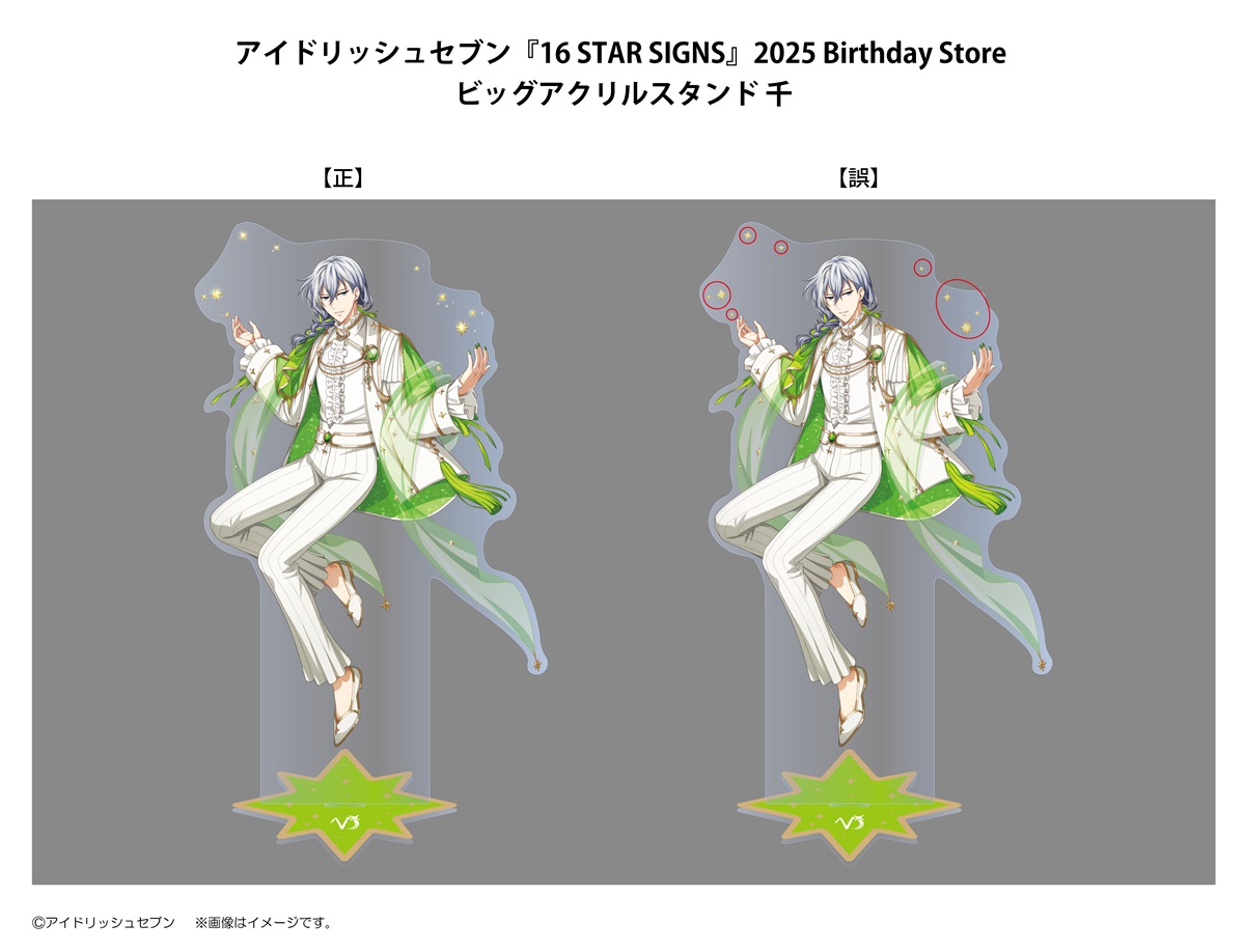 アイドリッシュセブン『16 STAR SIGNS』2025 Birthday Store(以下「バースデーストア」)にて販売いたしました公式グッズのうち、下記の商品におきまして不備があることが判明いたしました。