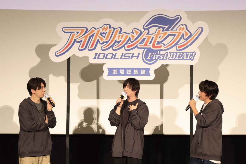 『アイドリッシュセブン First BEAT! 劇場総集編 前編』上映後、TRIGGERキャストの羽多野 渉(八乙女 楽 役)、斉藤壮馬(九条 天 役)、佐藤拓也(十 龍之介 役)が登壇しました!